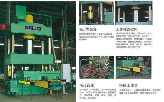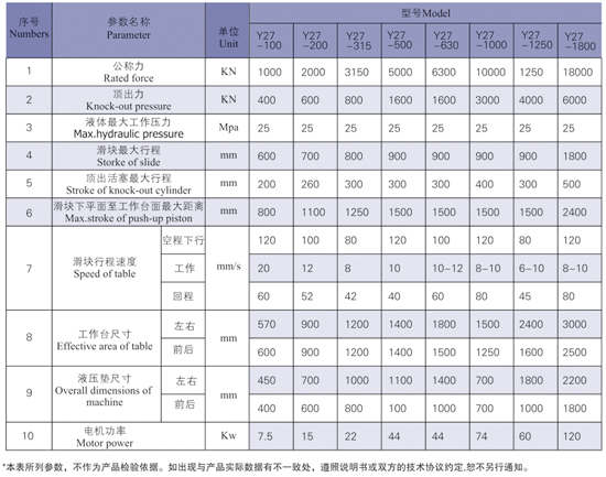 性能特點: Y27框架式單動薄板拉伸液壓機該系列液壓機主要用于汽車、拖拉機、機車車輛、船舶、電機、儀表等工業.以及動力工業和航空工業等部門的金屬薄板拉伸、彎曲、沖裁、擠壓、成型工藝等。對于各種高強度合金板料的拉伸工作也適宜。該系列機床可帶移動工作臺.并用PLC 控制。 技術參數: